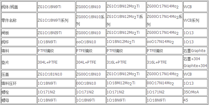 阀体材质:WCB、304、316、铜、铬钼钢等